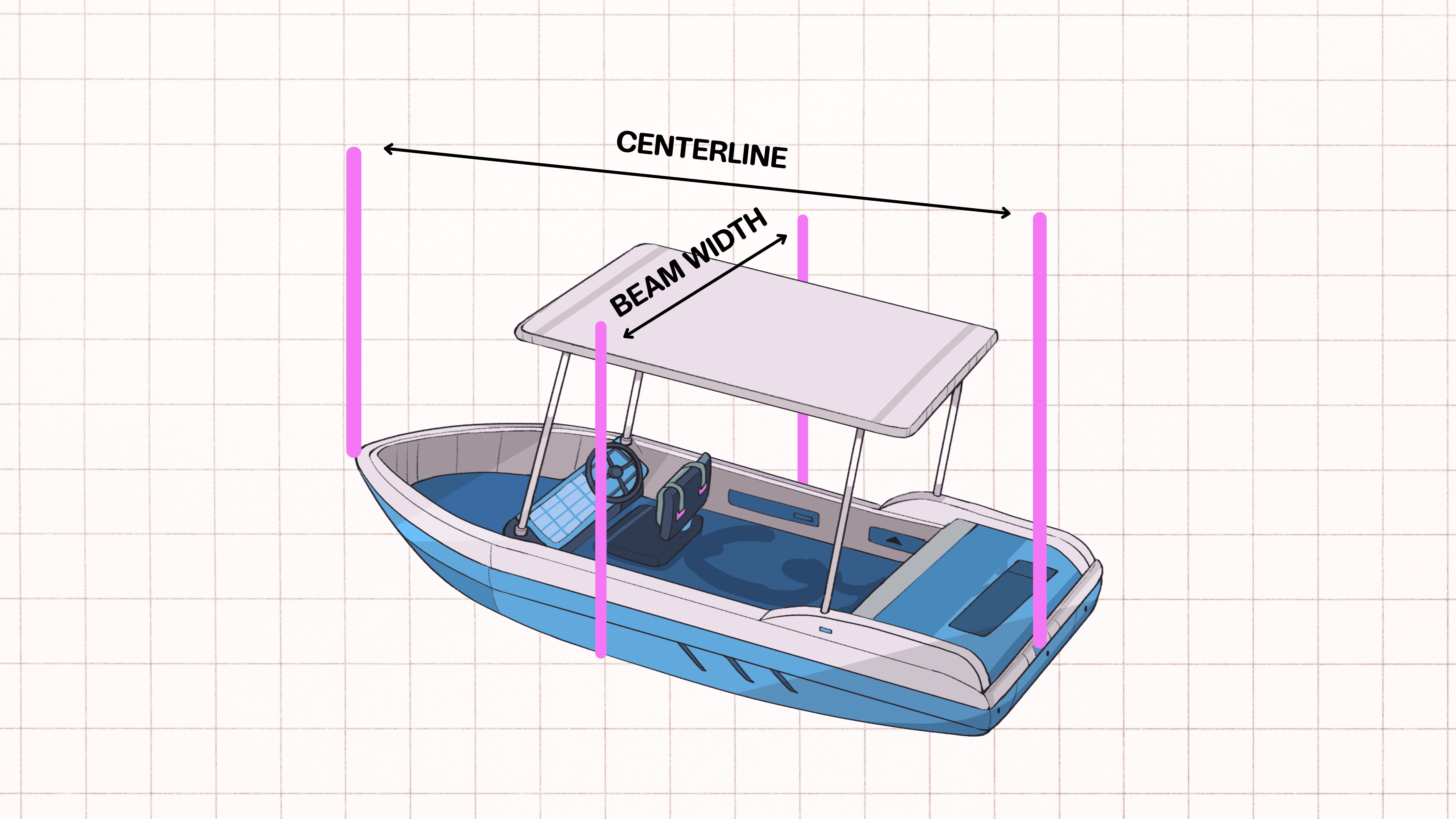 • Beam: Measures the boat from side to side at the widest point. It tells you how wide the boat is.