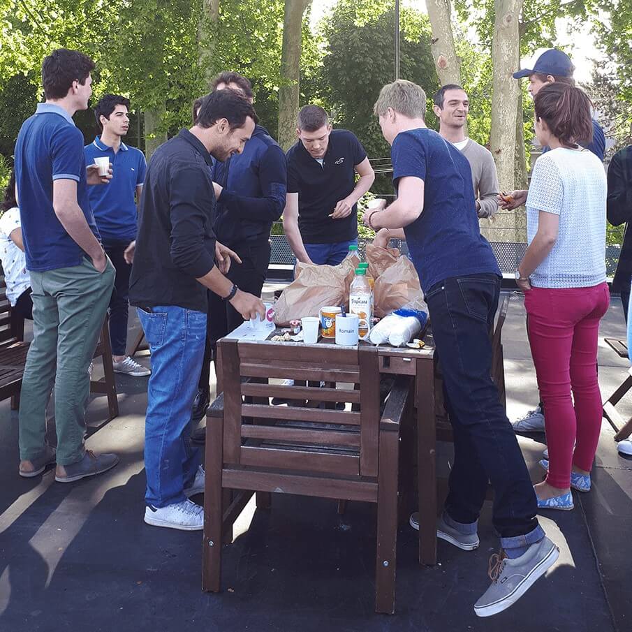 Cada lunes por la mañana es el mismo ritual. A las 9H00, hay la cola para la máquina de café: ¡it’s time for breakfast…! Nuestras tazas de café rellenadas, nos juntamos para el super desayuno: croissants, pan y mermelada, zumos… todo está pronto para empezar la semana con la sonrisa. Este desayuno, es un momento privilegiado, que nos permite empezar la semana con un momento de vida distendido. Nos contamos nuestro fin de semana, creamos lazos, cohesión, primordial para nuestra productividad. Es también la ocasión de presentar los nuevos miembros (sí, la start-up crece y acogemos cada semana nuevas personas :-)) para facilitar la integración en el equipo.