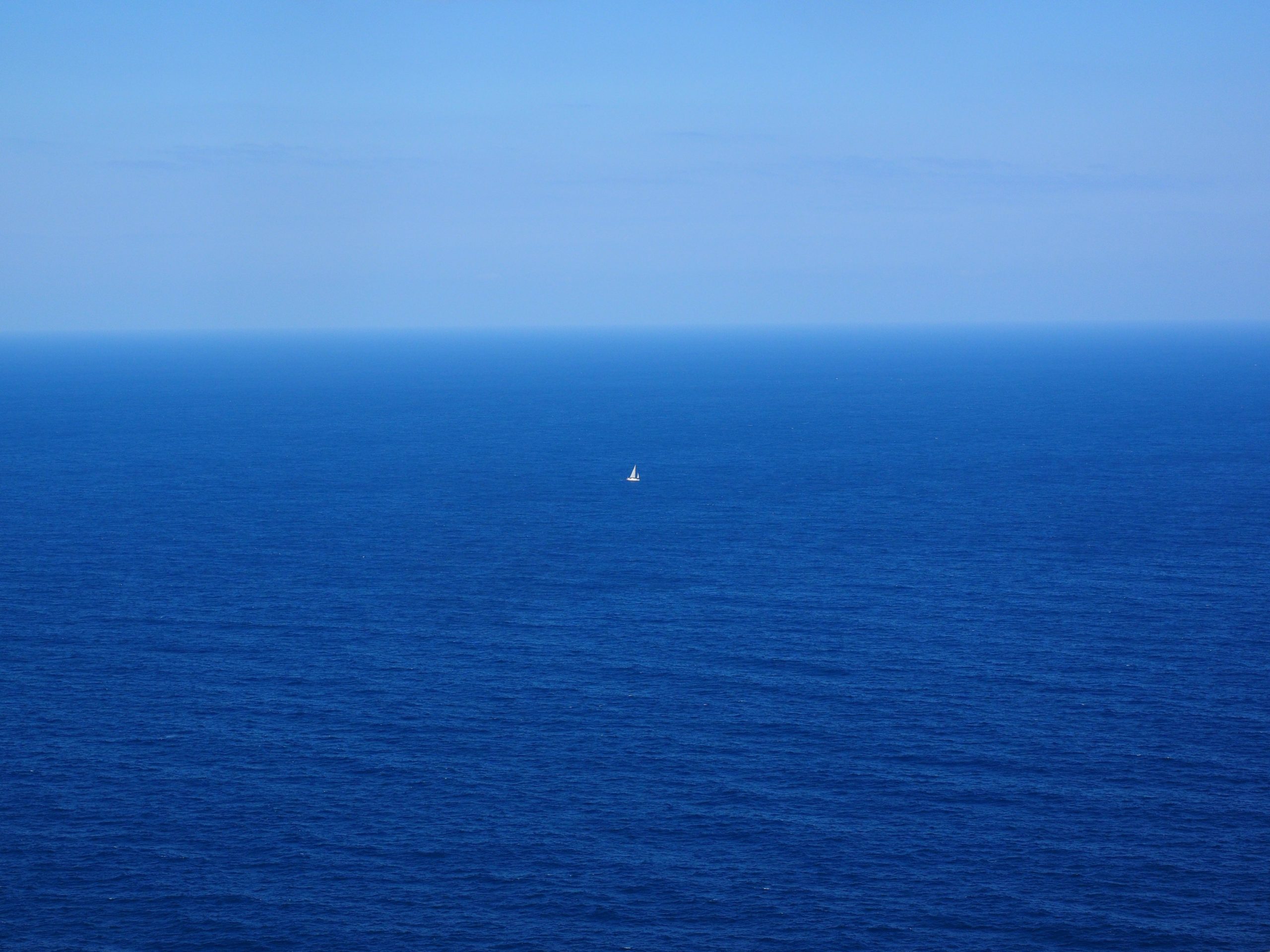 Petit voilier isolé au milieu d’un vaste océan bleu
