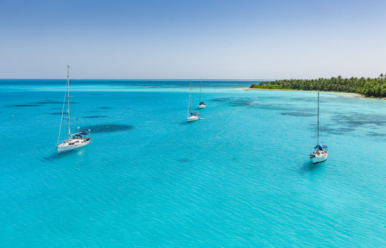 À mi-chemin entre ambiance française et influences caribéennes, Saint-Martin incarne un bon équilibre entre détente et aventure. En janvier, l’île bénéficie de 28 °C en moyenne avec des eaux turquoises et plages de sable blanc. Vous pouvez louer un catamaran avec skipper pour explorer librement les îles voisines comme Tintamarre, Anguilla ou Saint-Barthélemy et profiter des meilleurs mouillages sans contrainte. Les conditions sont parfaites pour naviguer d’archipel en archipel. ⭐Fun fact : l’île de Saint-Martin est partagée entre deux états par une frontière de 10 km séparant la partie française, située dans le nord de l’île, et la partie néerlandaise, dans le sud.