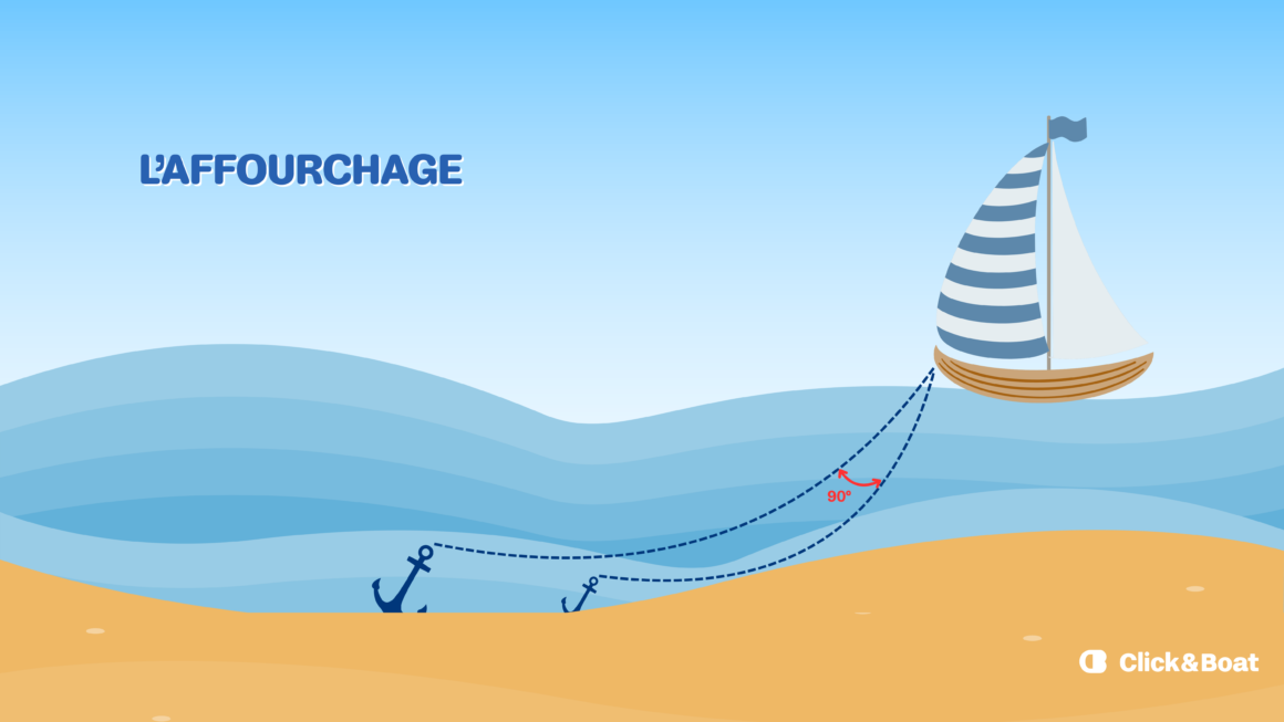 Le vent est instable ou vous manquez de place dans une crique bondée ? L’affourchage est la solution. Cette technique consiste à mouiller deux ancres sur l’avant, formant un V d’environ 60 à 90 degrés.